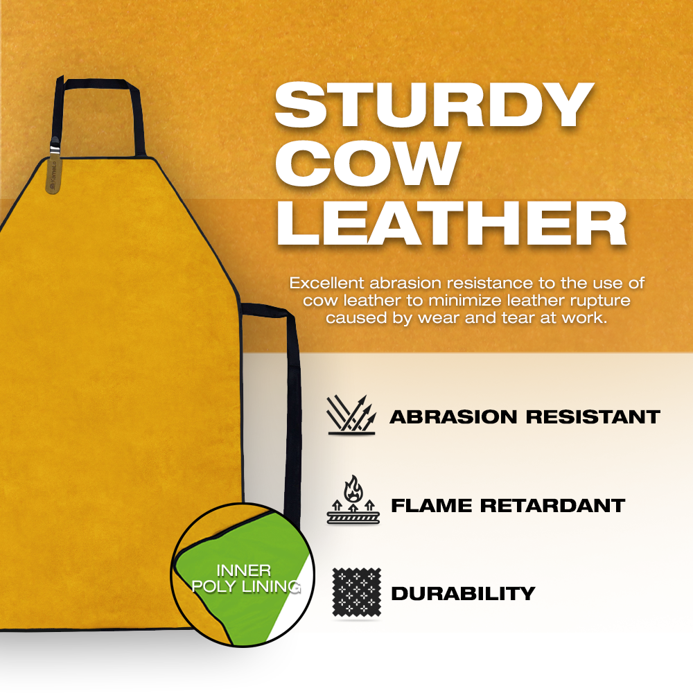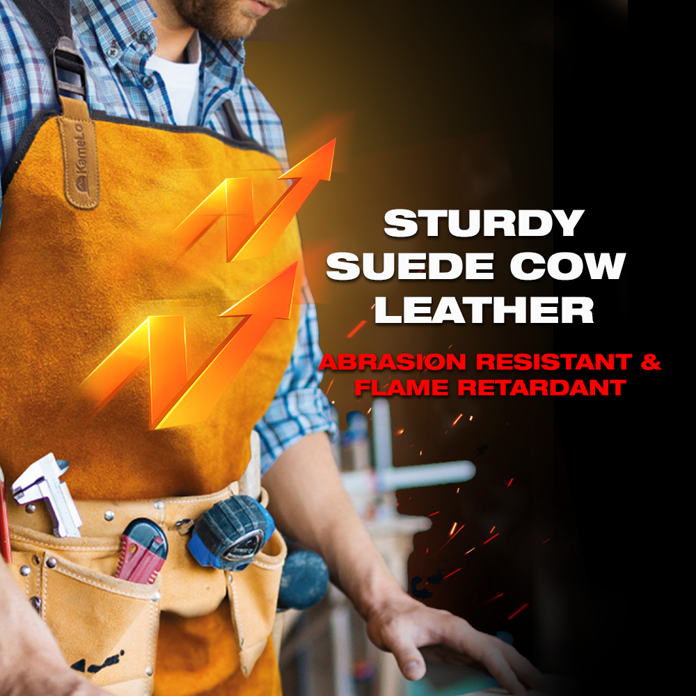 The KameLo AP-2TAN Leather Welding Work Apron is designed to provide reliable protection and comfort in demanding work environments.