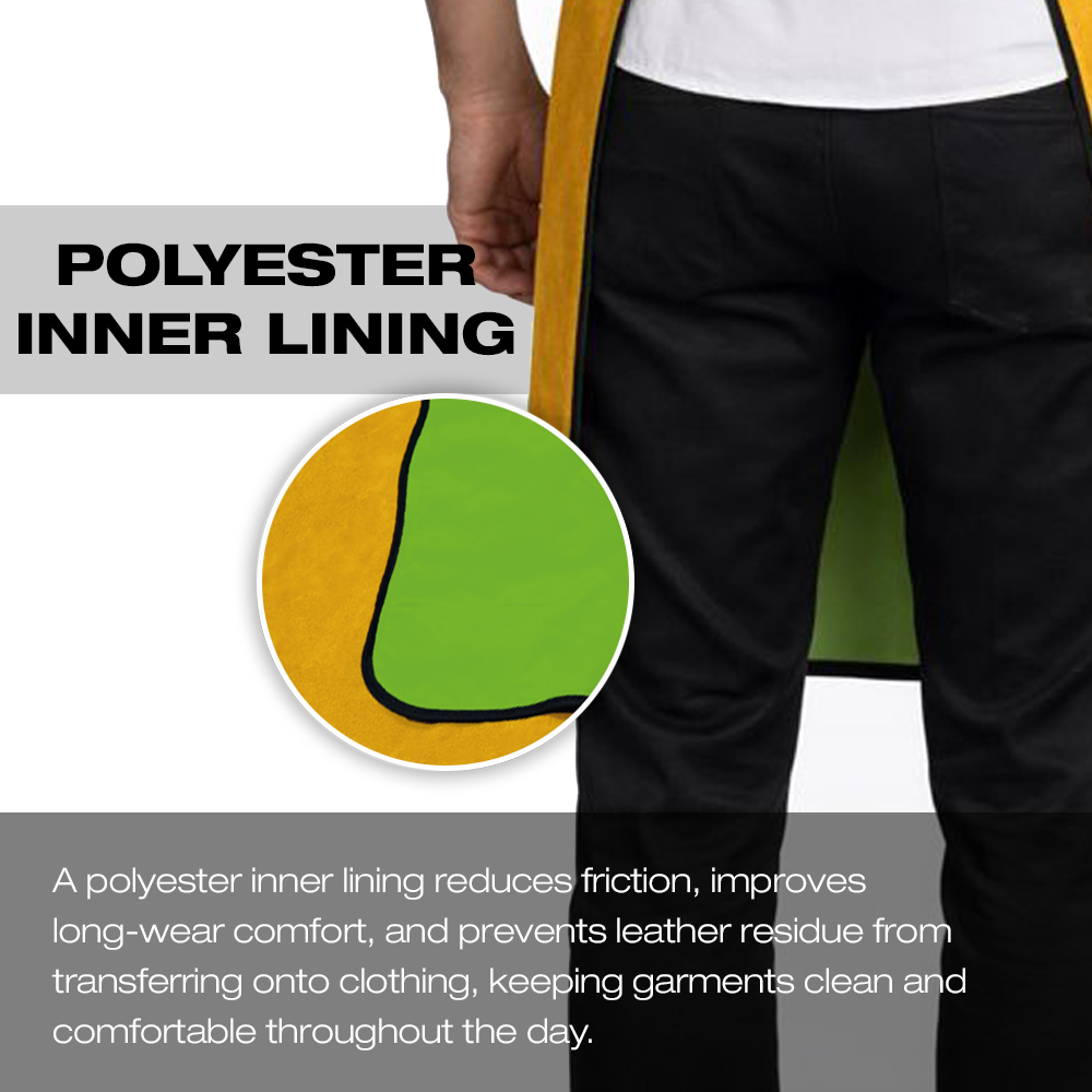 A polyester inner lining is added to reduce friction, prevent leather residue from transferring onto clothing, and enhance long-wear comfort, keeping garments clean throughout the day.