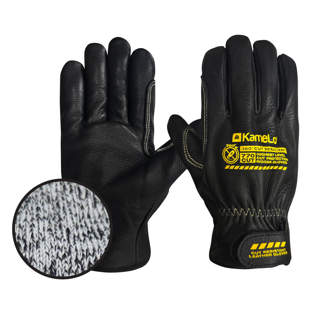 KameLo Cut Resistant Leather Rigger Gloves Premium Cowhide Work Gloves for Grinding, Woodcraft & Steelwork 360° | 770-CUT
