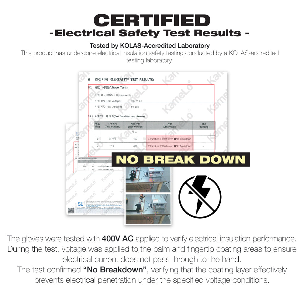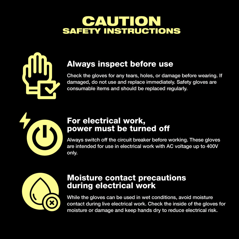 This glove is designed to support electrical handling tasks but is not a certified high-voltage insulating glove. Always disconnect power before working on live electrical systems.