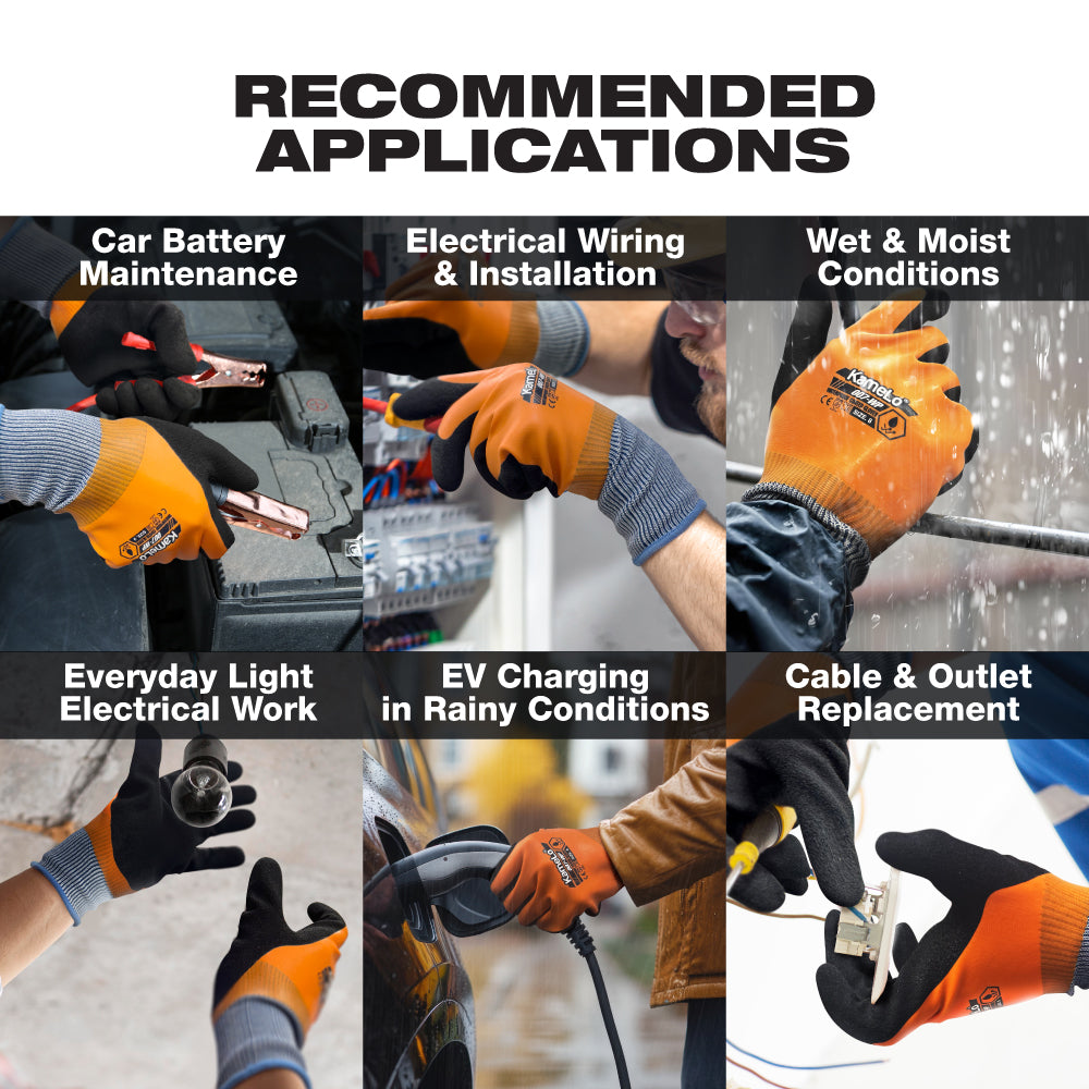 KameLo Electrical Work Gloves for Electricians, 400V AC Tested, Waterproof & Oil Resistant Nitrile Coated Grip, Hi-Vis Safety Gloves for Wiring & Installation, EN388 | 007-WP