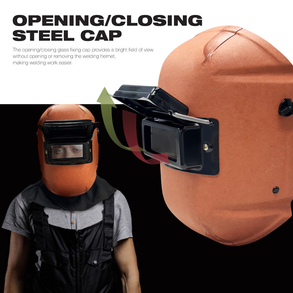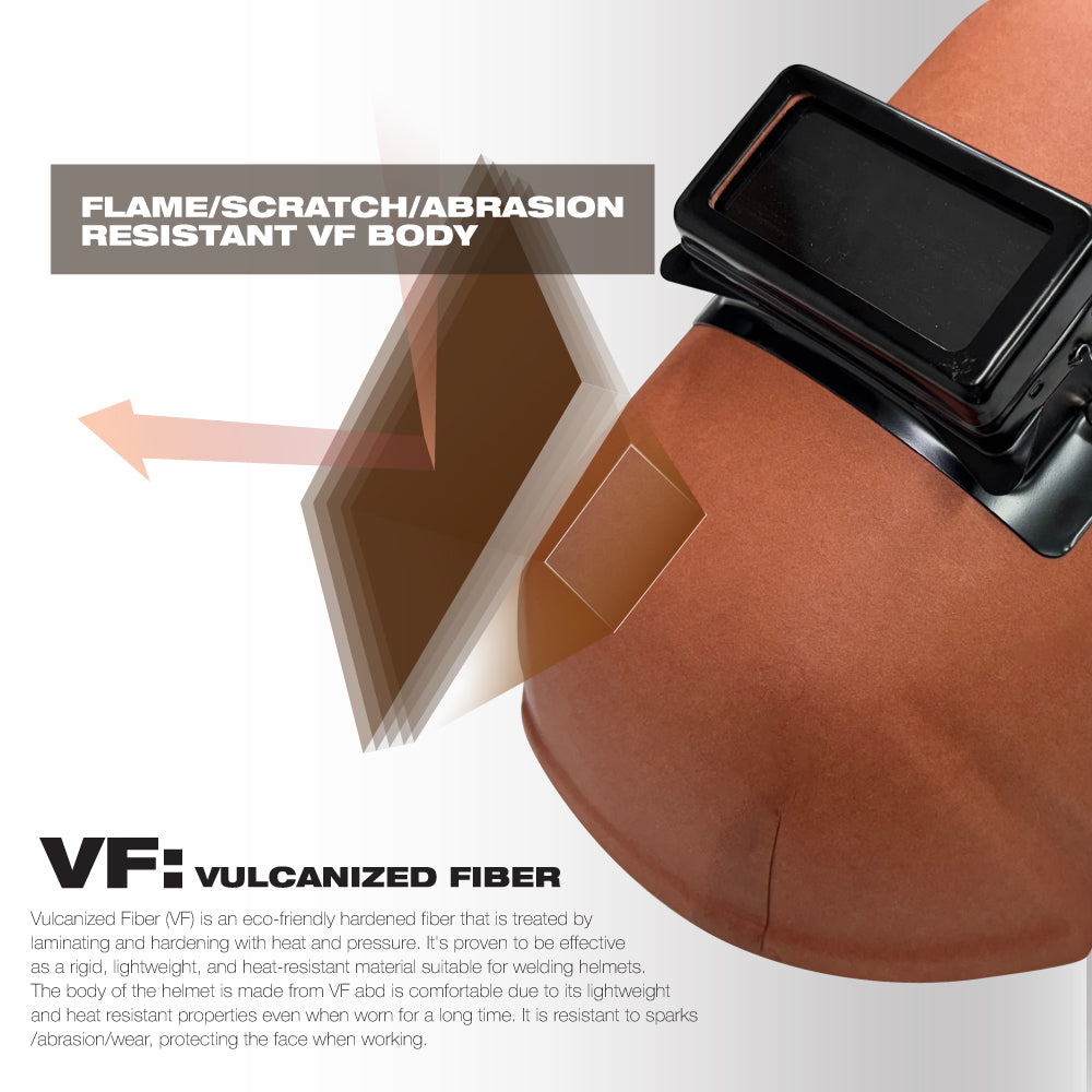 A lightweight manual welding helmet crafted from Vulcanized Fiber (VF) — a material renowned for its exceptional heat and flame resistance.