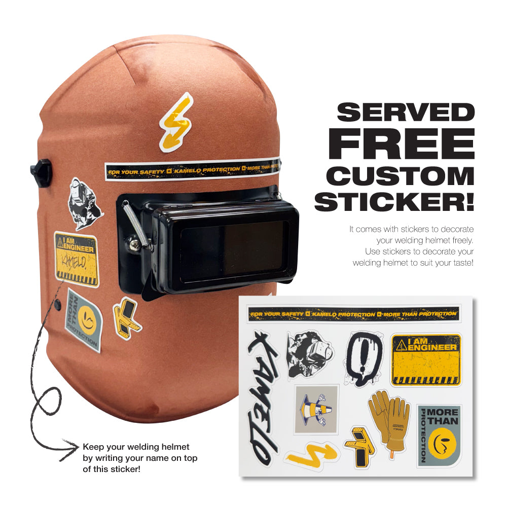 Its steel flip-up cap allows you to quickly check your work without removing the helmet, while the adjustable head strap and soft leather pad provide a secure, comfortable fit during long hours. Comes with a free custom sticker set so you can personalize your helmet with your own style.
