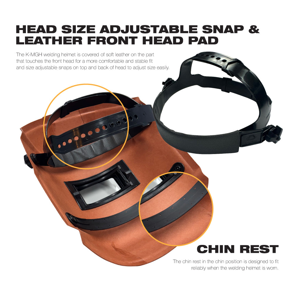 KameLo Manual Welding Helmet for TIG, MIG, ARC – Lightweight Vulcanized Fiber Body | K-MGH